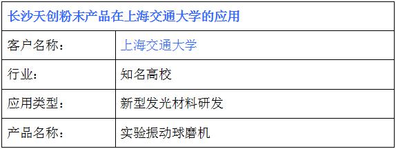 上海交通大學(xué)在天創(chuàng)粉末采購一臺實(shí)驗(yàn)振動球磨機(jī),用于新型發(fā)光材料球磨實(shí)驗(yàn)研發(fā)。