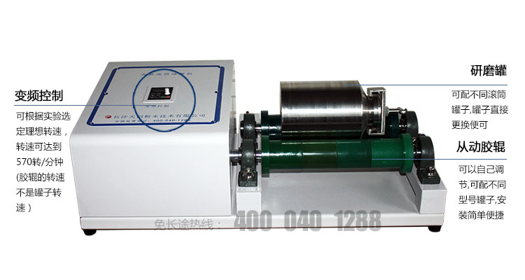 3.通過調(diào)整從動膠輥可以使用一定范圍內(nèi)的不同外徑的球磨罐;